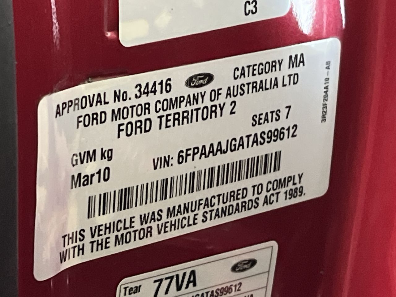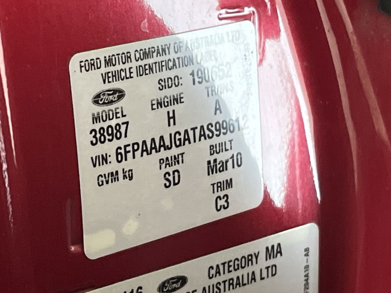 • VIN: 6FPAAAJGATAS99612