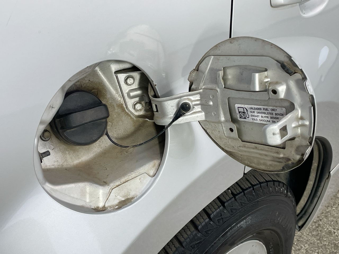 • Corroded paint chips around vehicle, rear bumper dislodged.