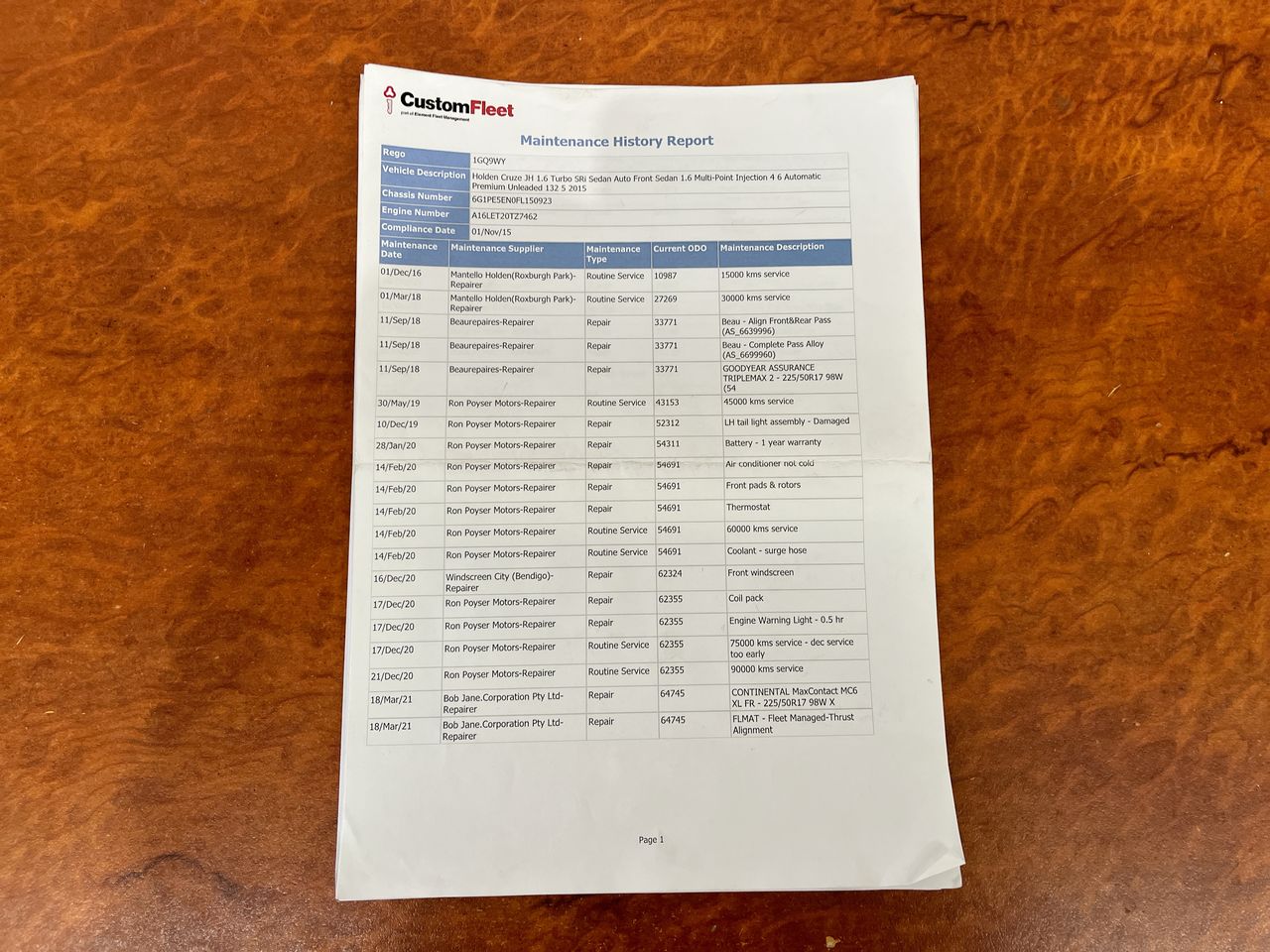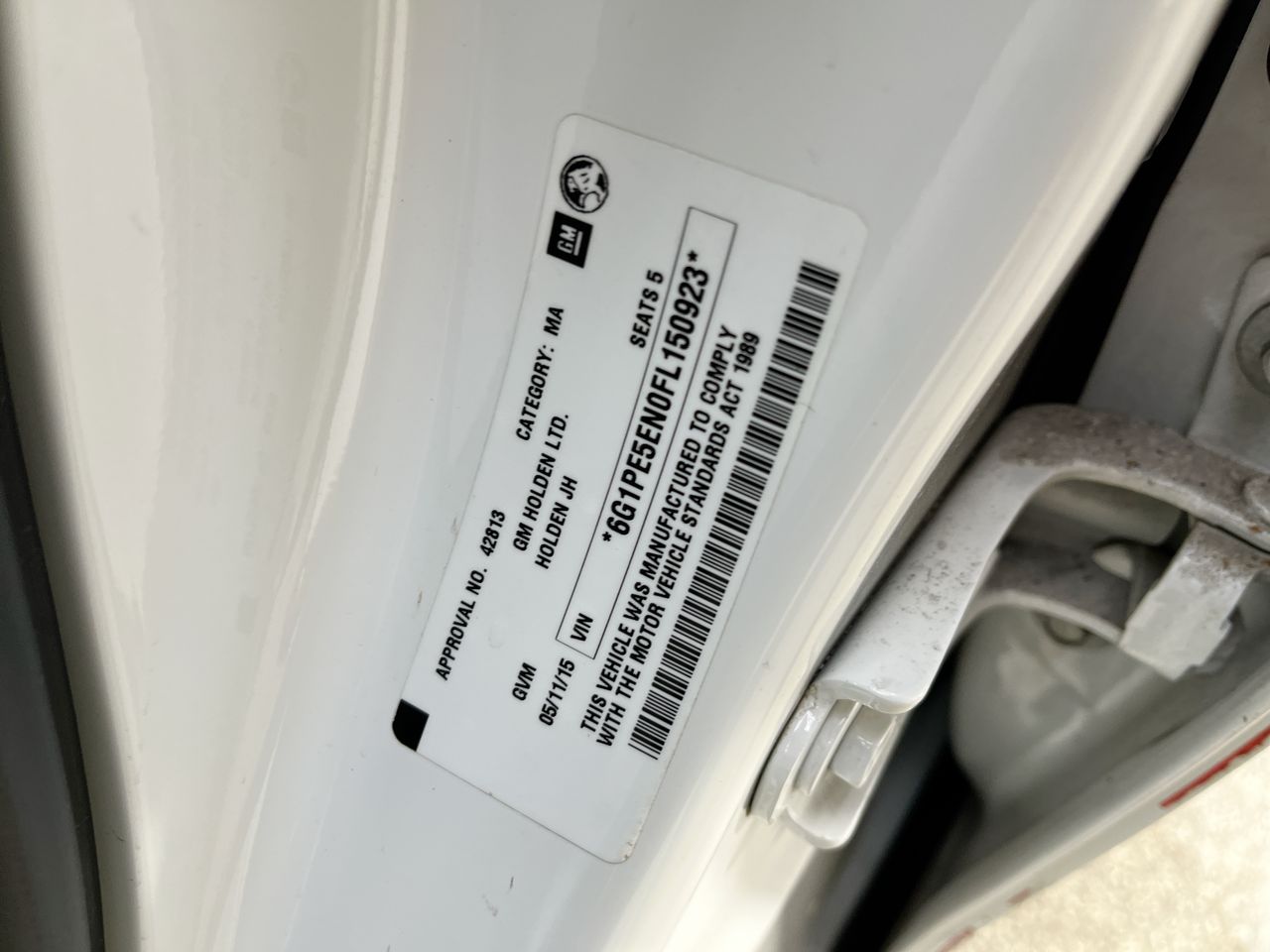 • VIN: 6G1PE5EN0FL150923