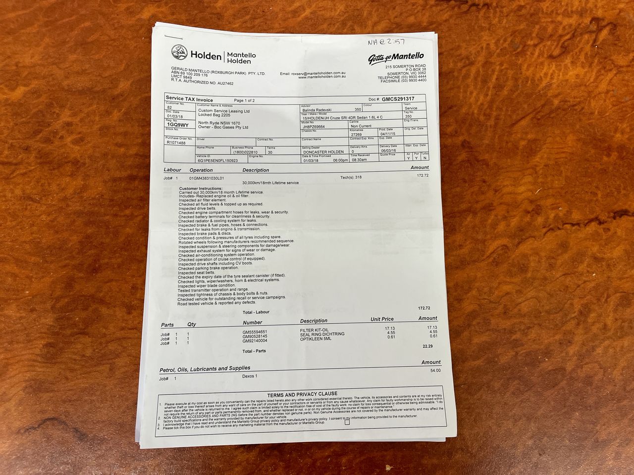 Part of Sale 2015 Holden Cruze SRi JH Automatic Sedan