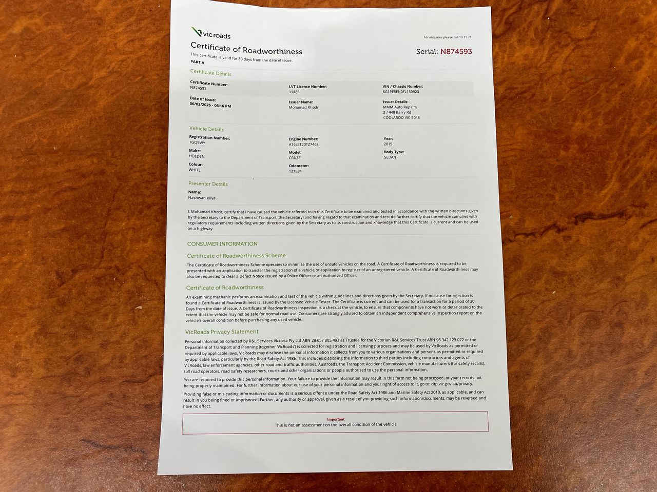 VIC Auto Enquires about the item