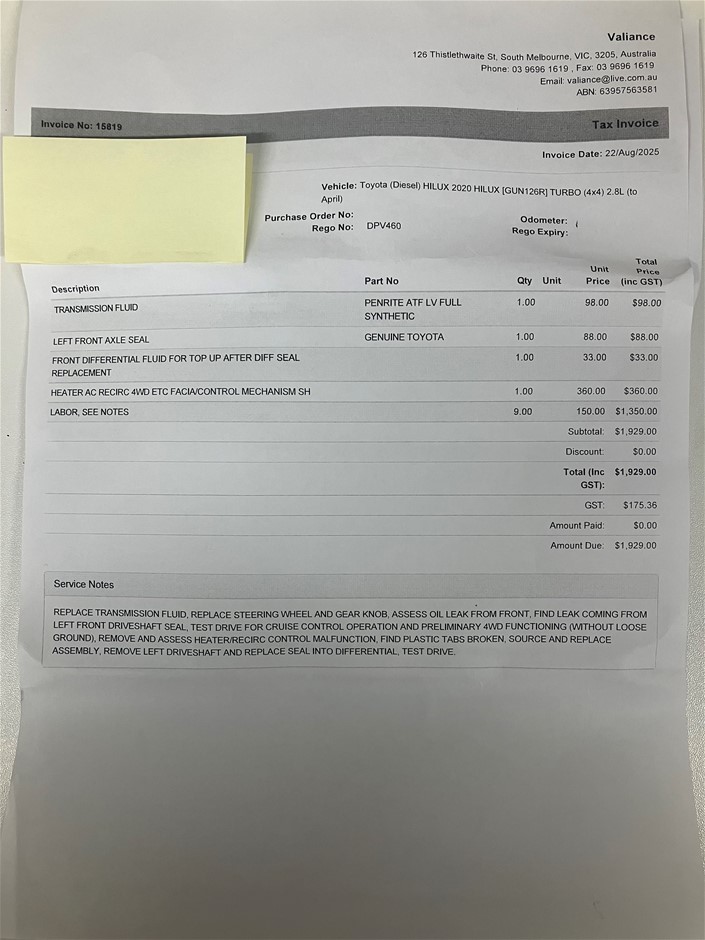 | Part of Sale | 2020 Toyota Hilux 4x4 SR GUN126R Turbo Diesel Automatic Crew Cab Chassis | ||||||||||||||