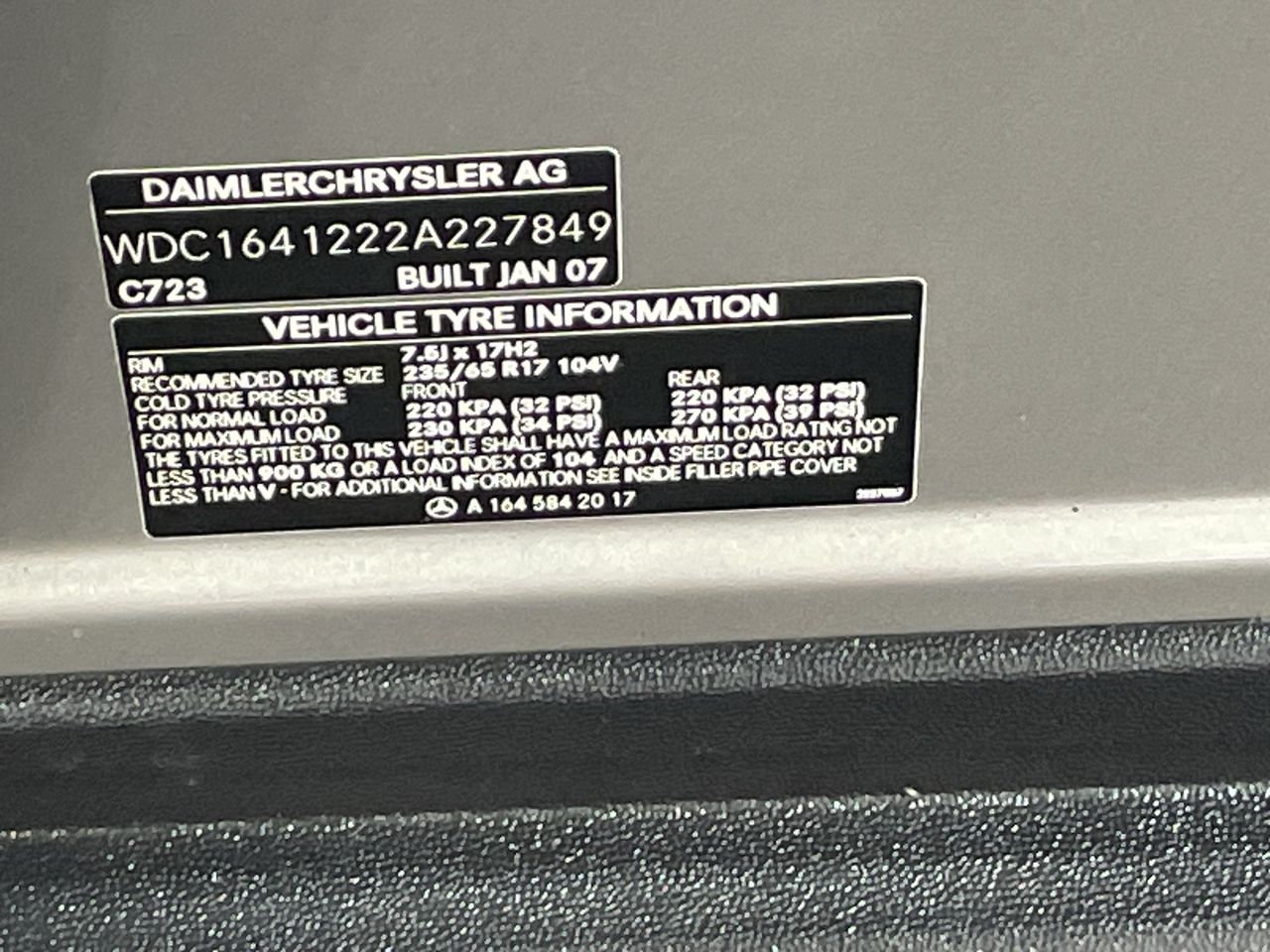 • VIN: WDC1641222A227849