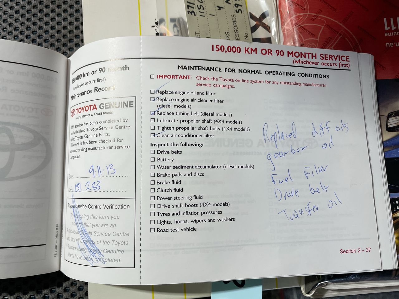 • Dents or marks on body consistent with age and kilometres.