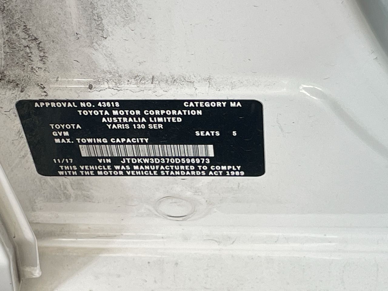 2017 Toyota Yaris Ascent NCP130R Automatic Hatchback