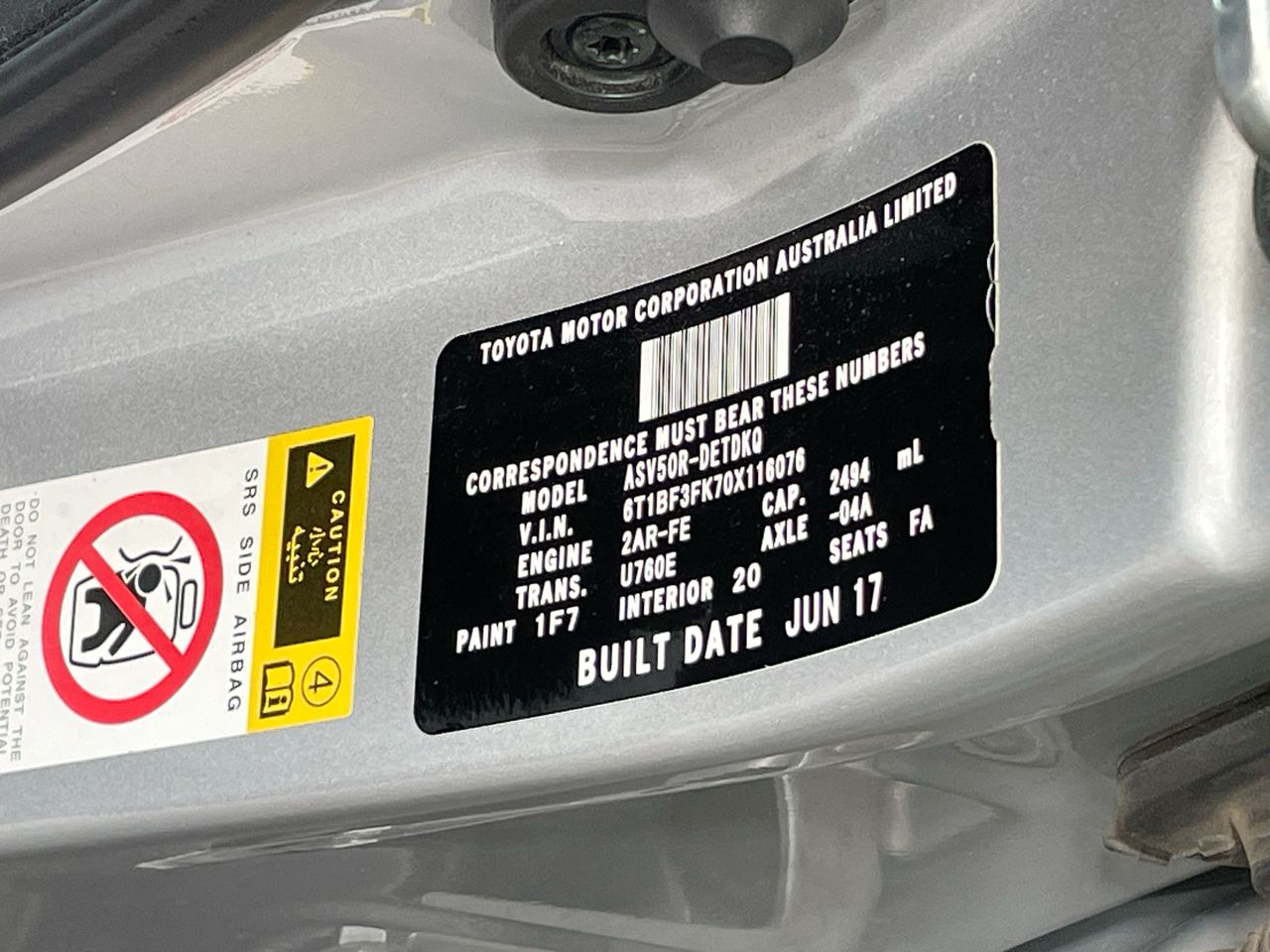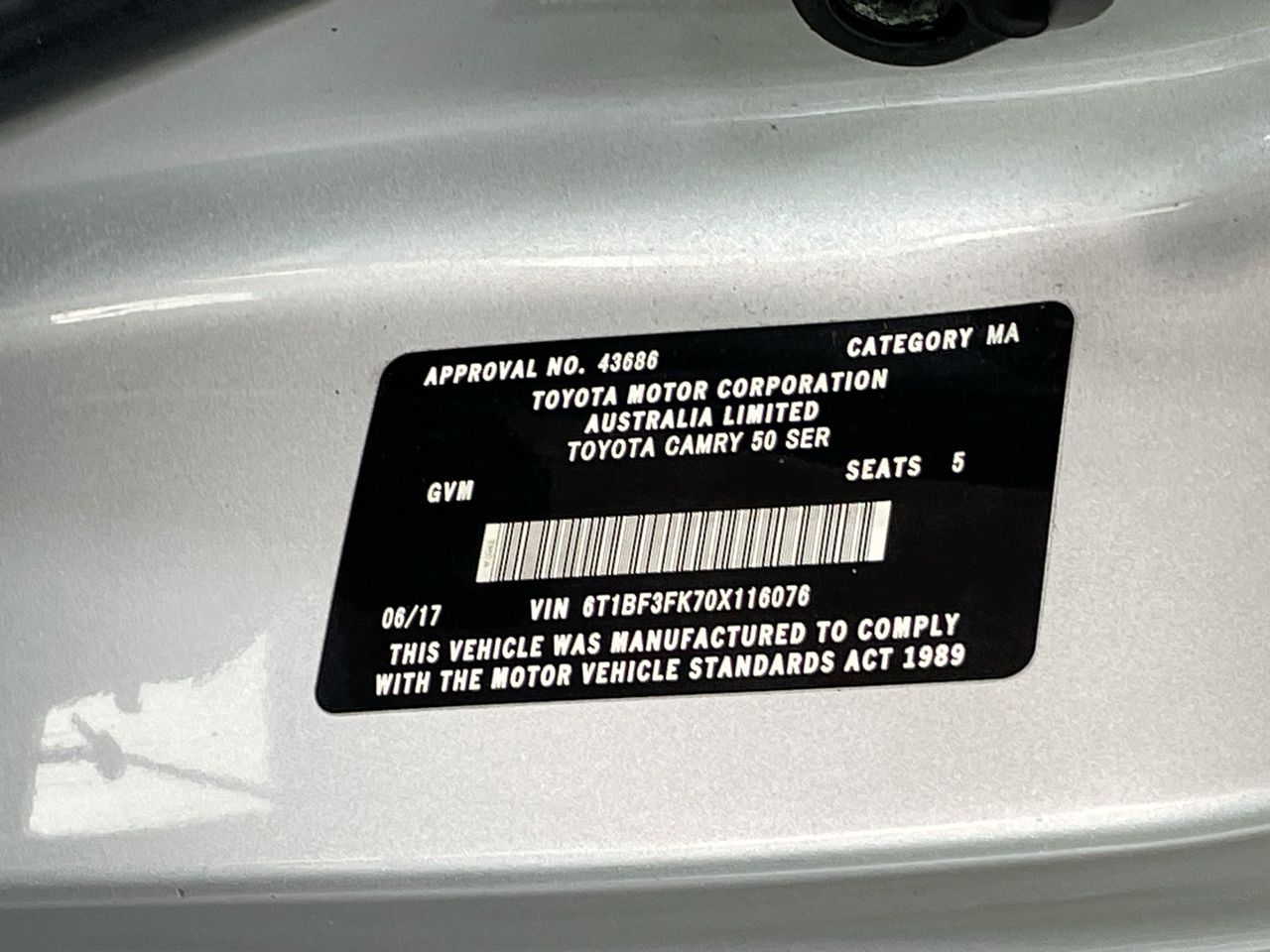 • VIN: 6T1BF3FK70X116076