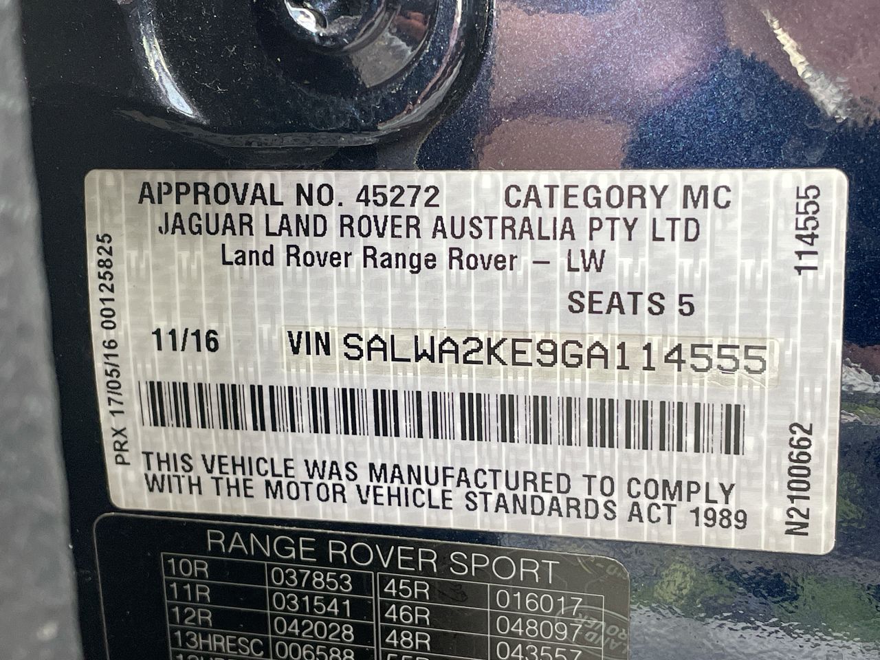 • VIN: SALWA2KE9GA114555