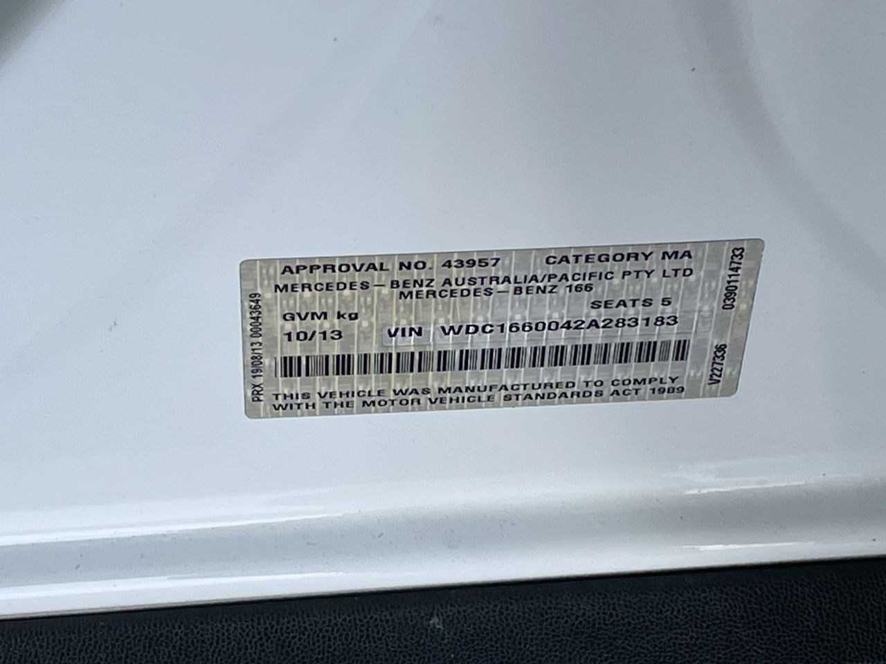 • VIN: WDC1660042A283183