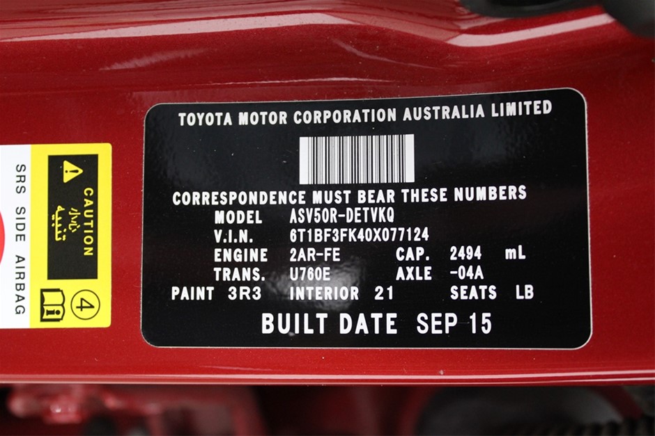 Part of Sale 2015 Toyota Camry ATARA SX ASV50R Auto Sedan