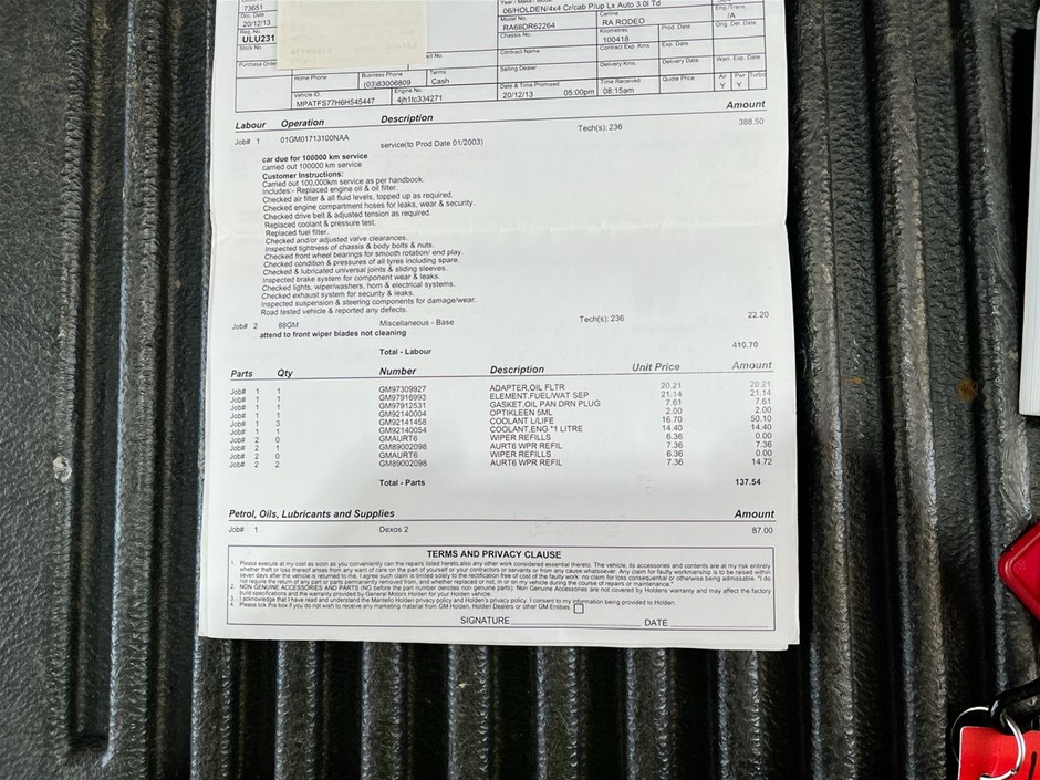 • Registration Expiry Date: 13-03-2026 - Registration will only be transferred to the registered bidder who must hold a valid VIC Drivers Licence otherwise vehicle will be sold unregistered.