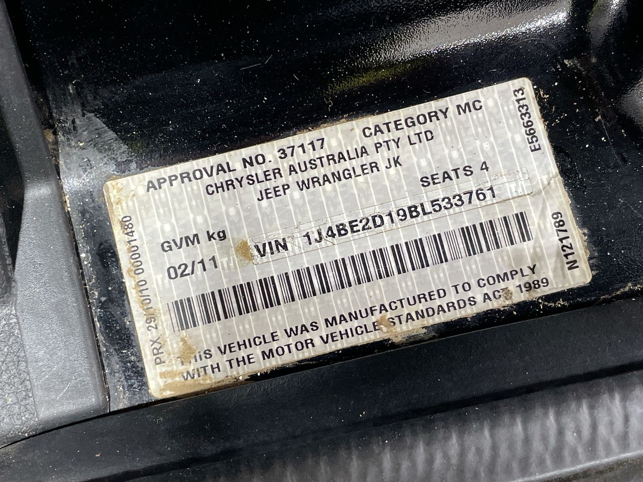 • VIN: 1J4BE2D19BL533761
