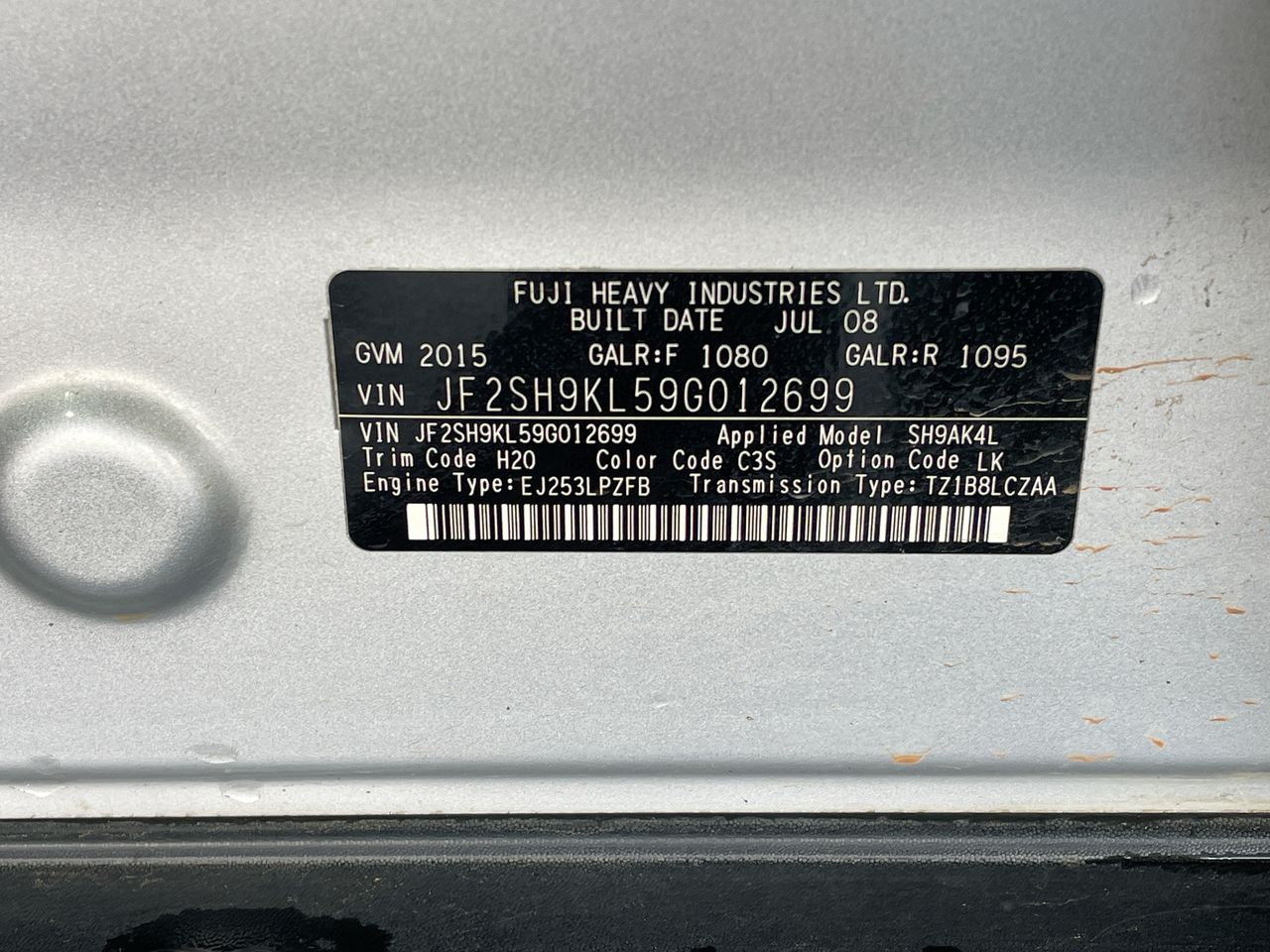 (SN:JF2SH9KL59G012699) (130389-2191)
