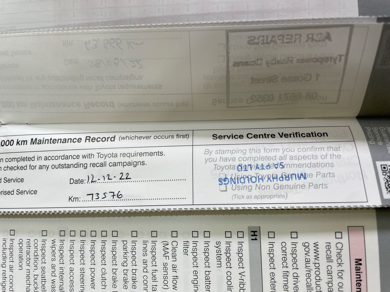 • Dents or marks on body consistent with age and kilometres.