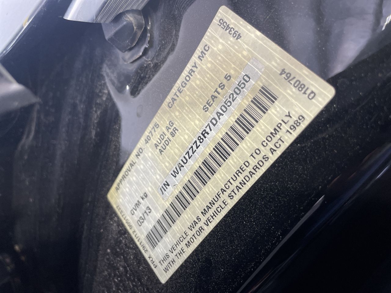 • VIN: WAUZZZ8R7DA052050