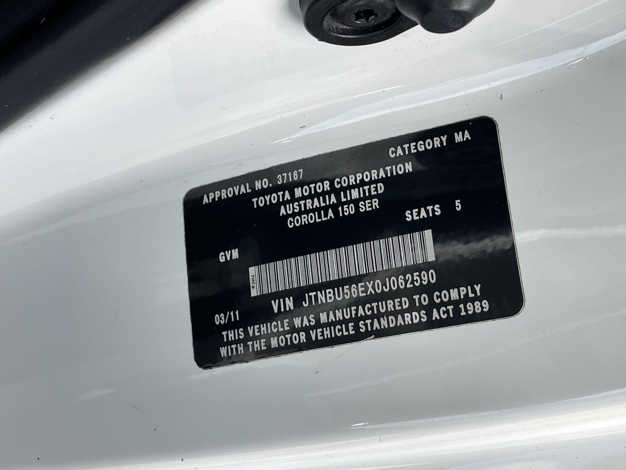2011 Toyota Corolla Ascent ZRE152R Automatic Sedan