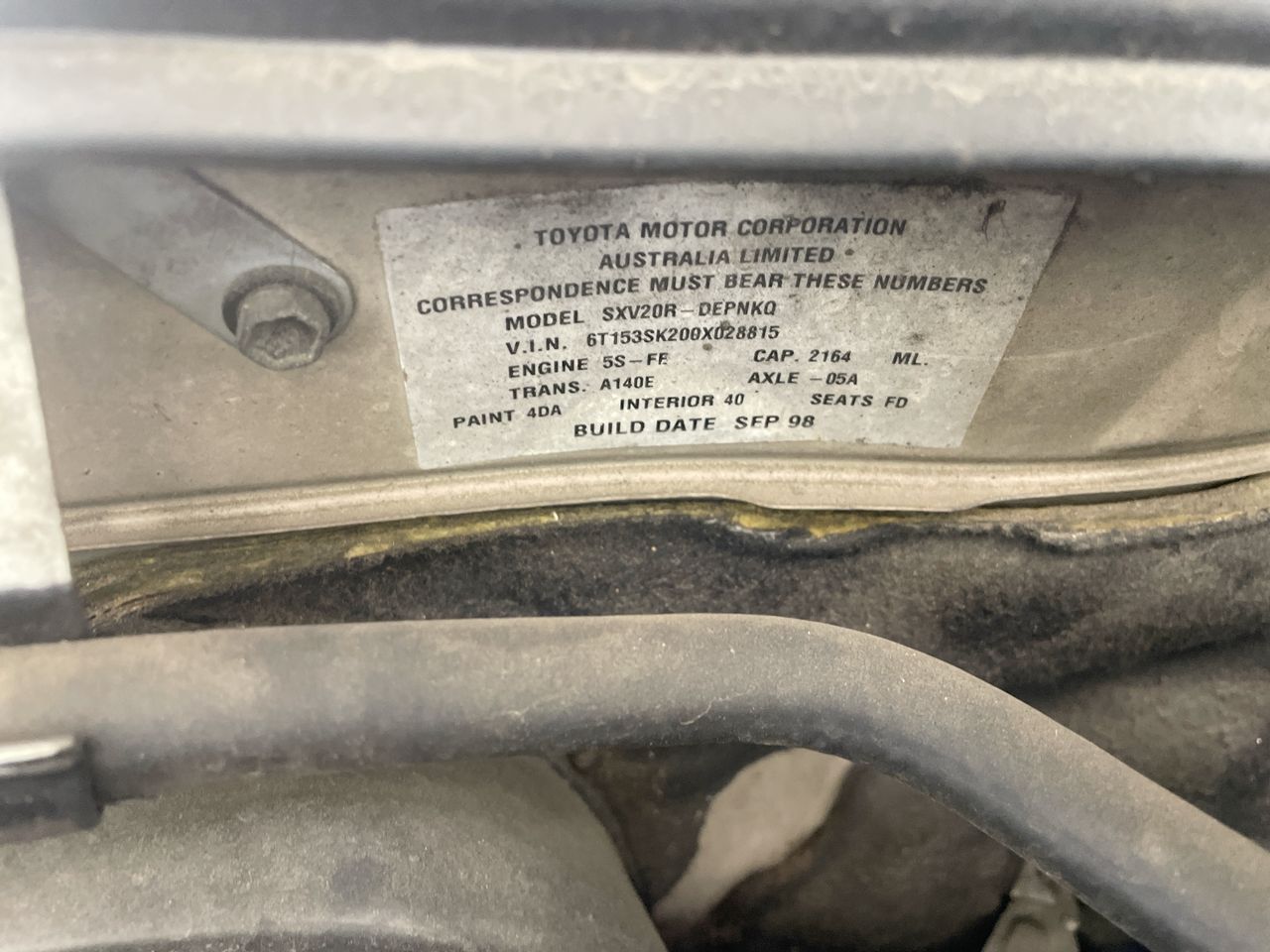 Part of Sale 1998 Toyota Camry CSX SXV20R Automatic Sedan