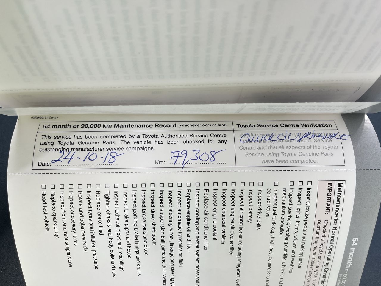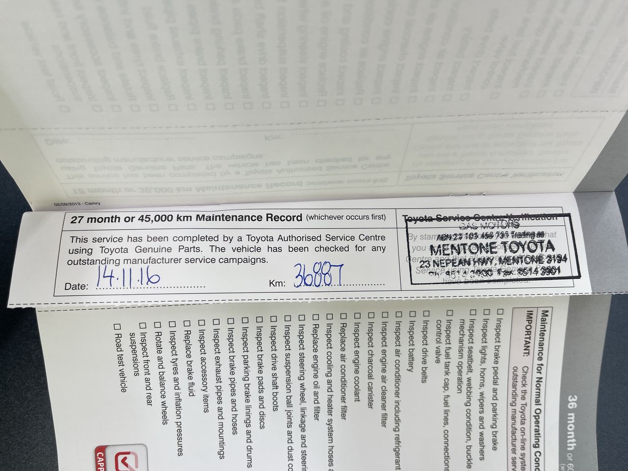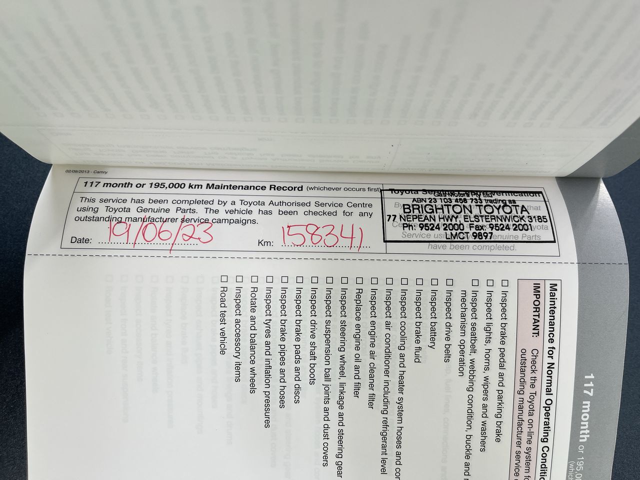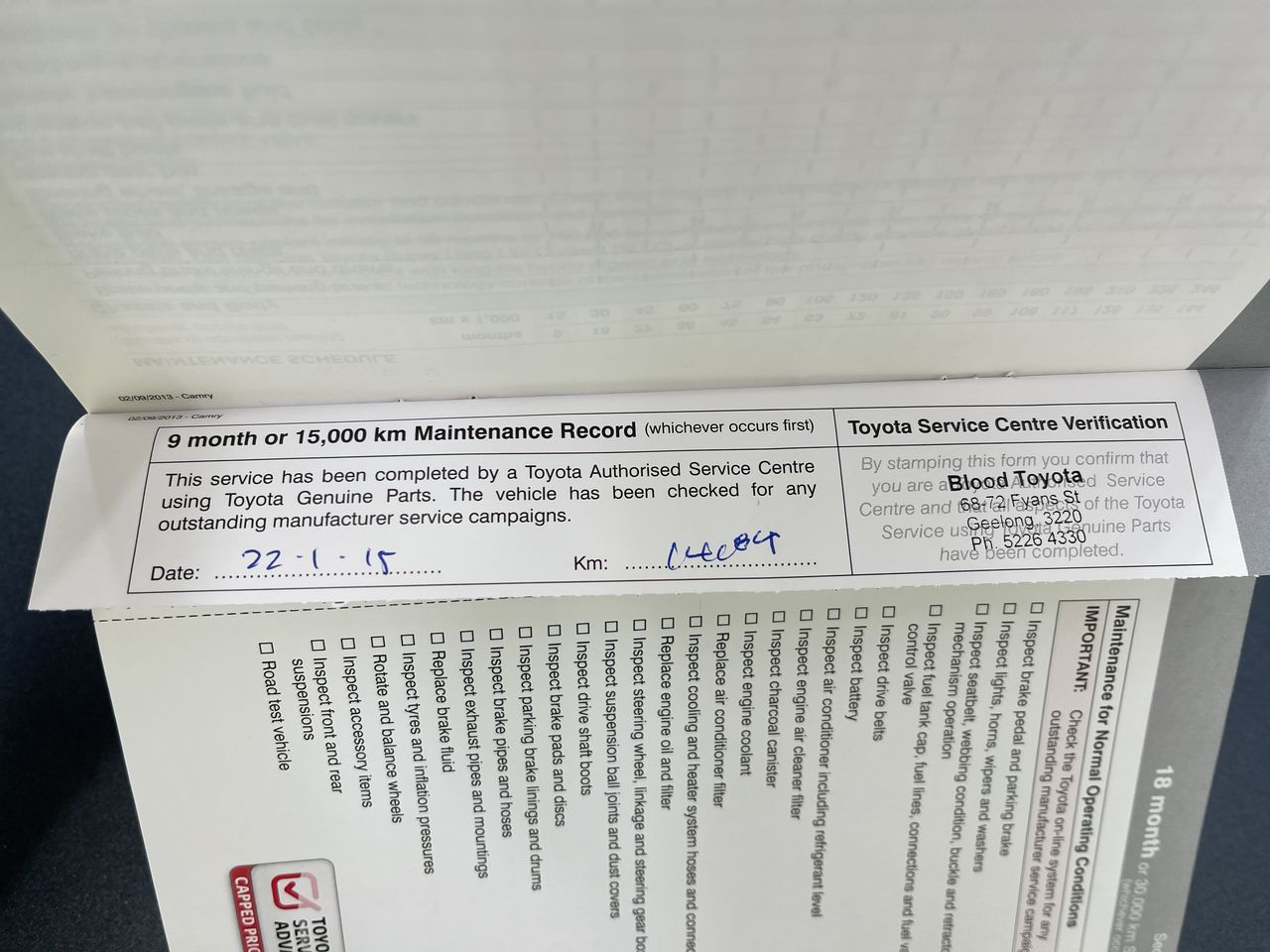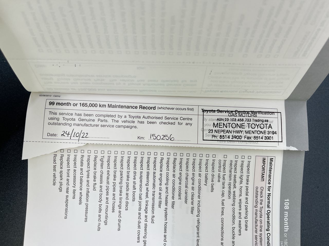 • Dents or marks on body consistent with age and kilometres.