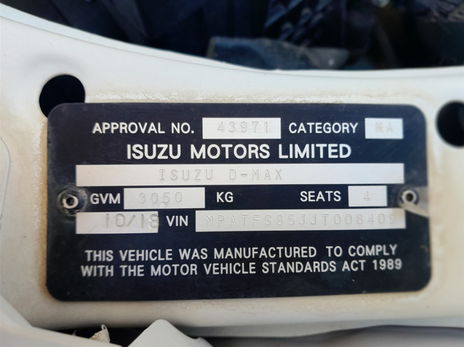Part of Sale 2018 Isuzu D-MAX 4X4 SX Turbo Diesel AT Extra Cab (EX-GOV)