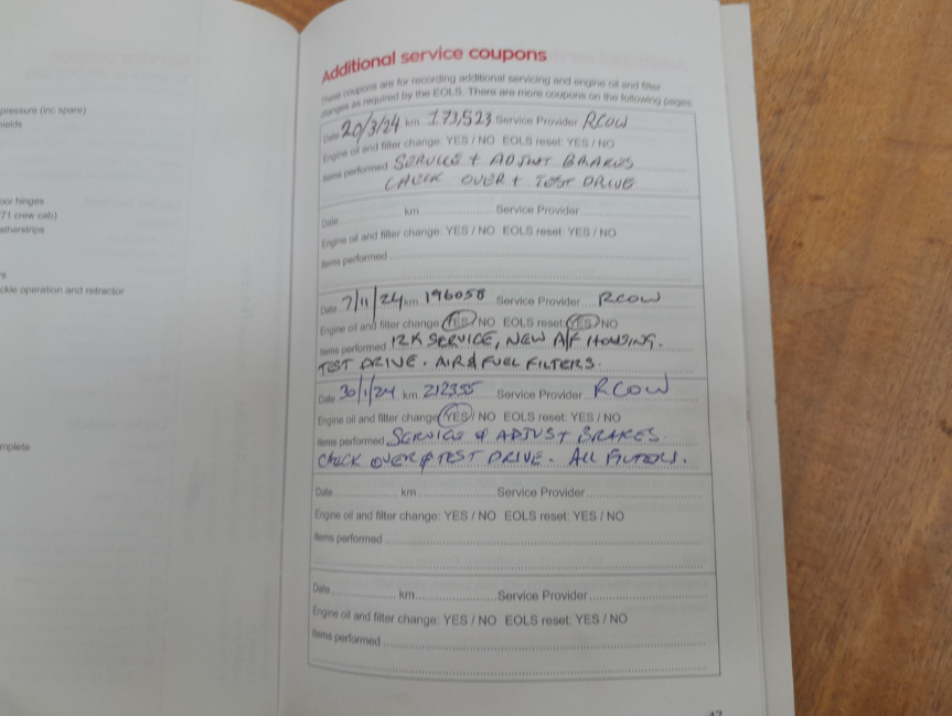 • Dents or marks on body consistent with age and kilometres.