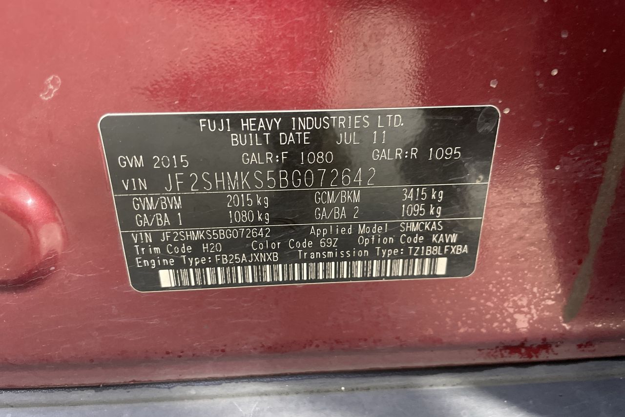 • VIN: JF2SHMKS5BG072642