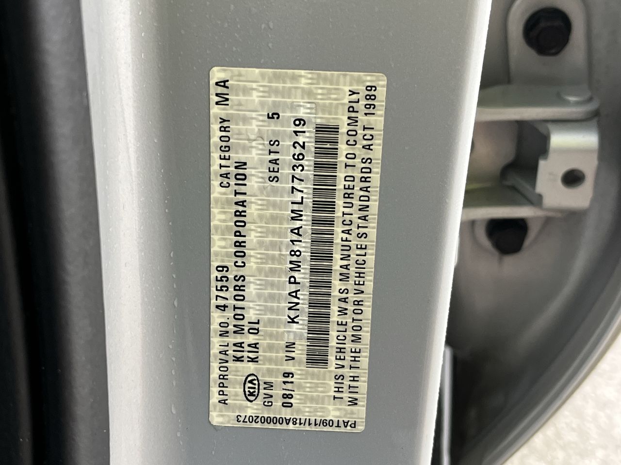 • VIN: KNAPM81AML7736219