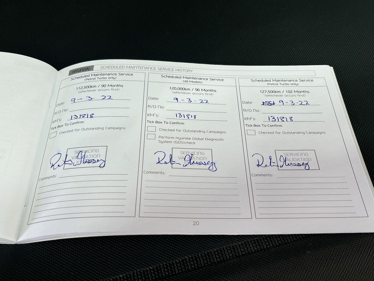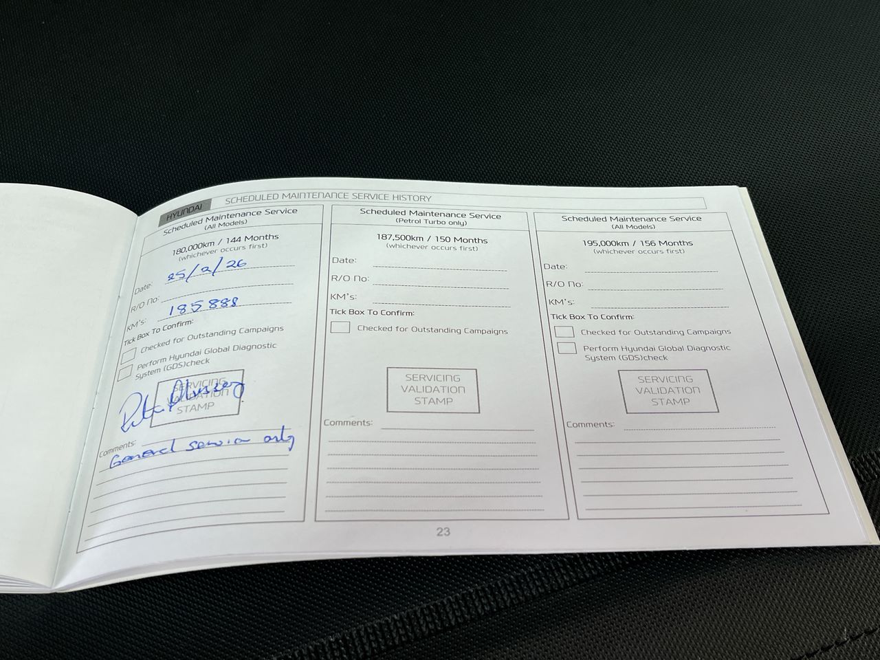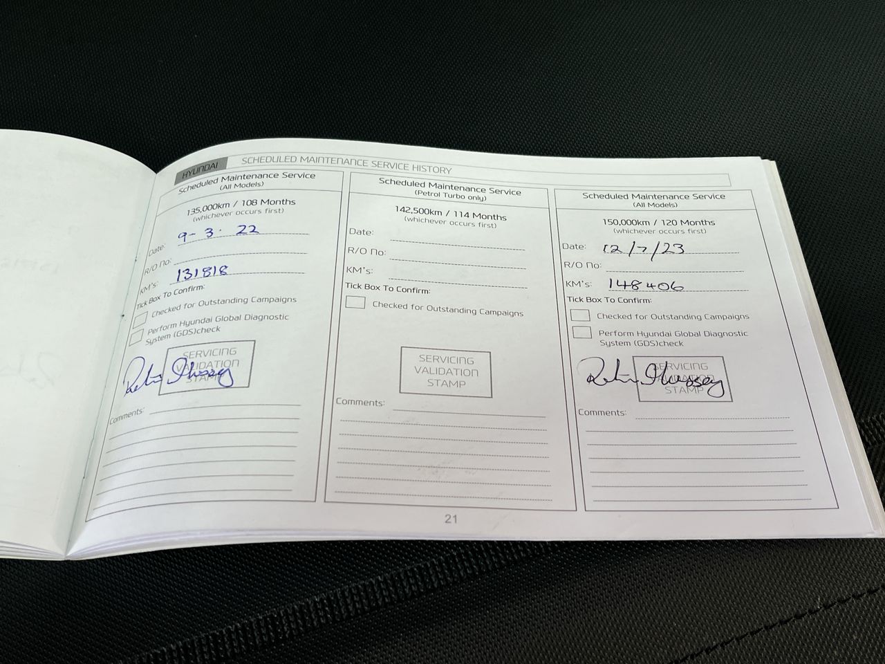 • Dents or marks on body consistent with age and kilometres.