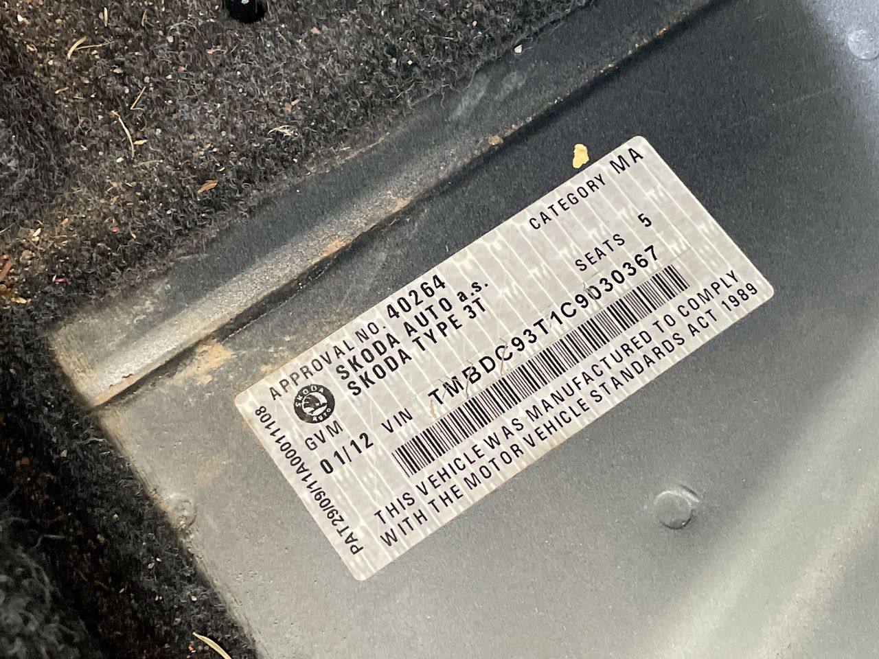 • VIN: TMBDC93T1C9030367