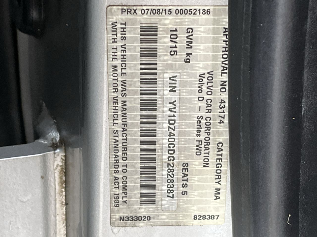(SN:YV1DZ40CDG2828387) (140589-19)