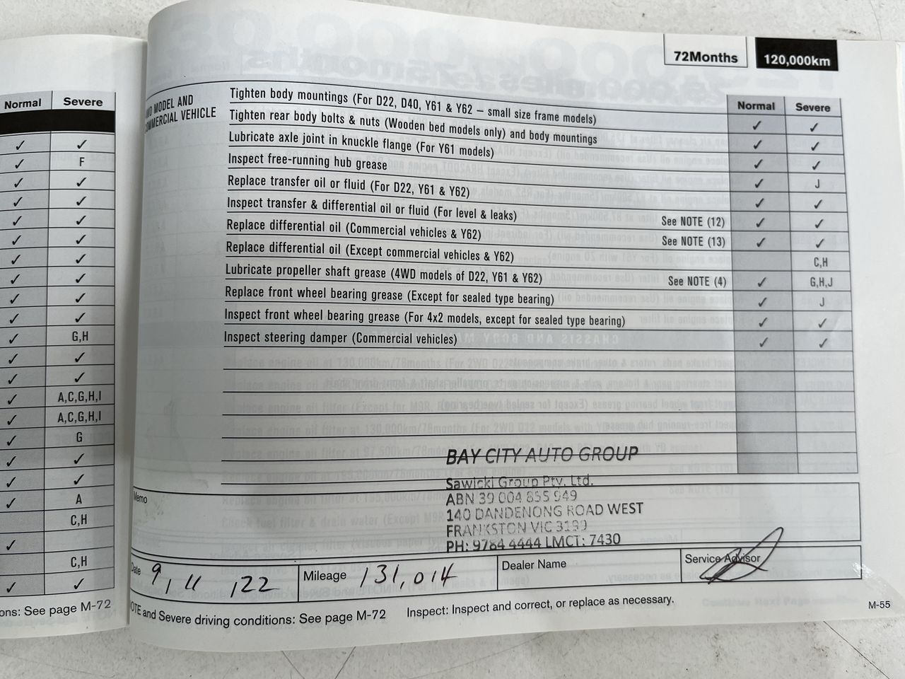 • Dents or marks on body consistent with age and kilometres.