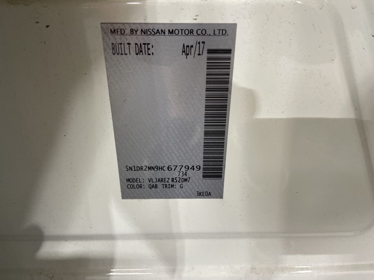 • VIN: 5N1DR2MN9HC677949