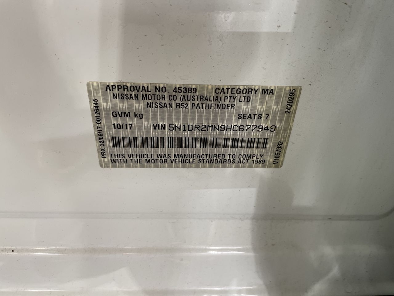 2017 Nissan Pathfinder ST R52 CVT 7 Seats Wagon
