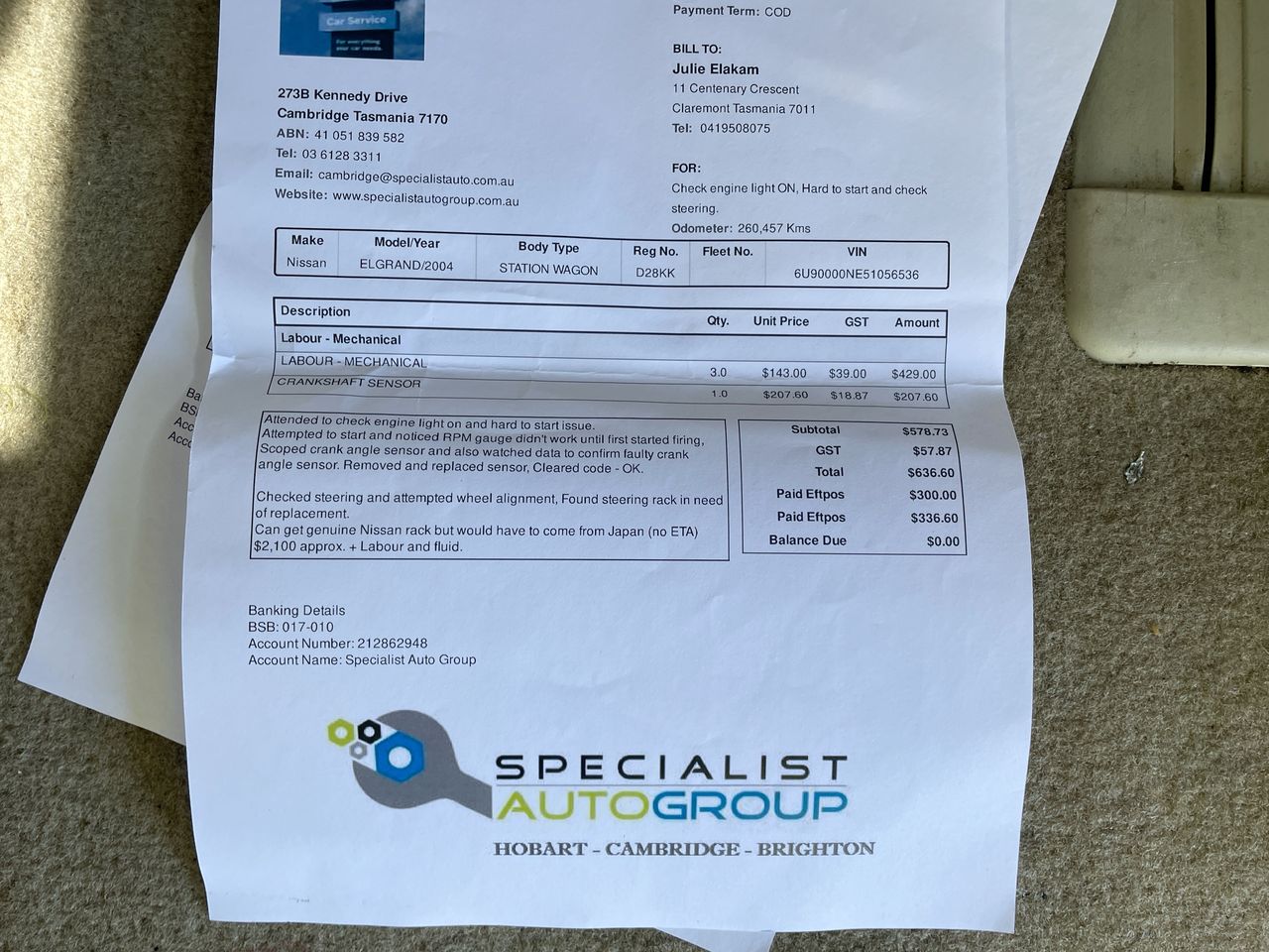 • Registration Expiry Date: 21-07-2026 - Registration will only be transferred to the registered bidder who must hold a valid VIC Drivers Licence otherwise vehicle will be sold unregistered.