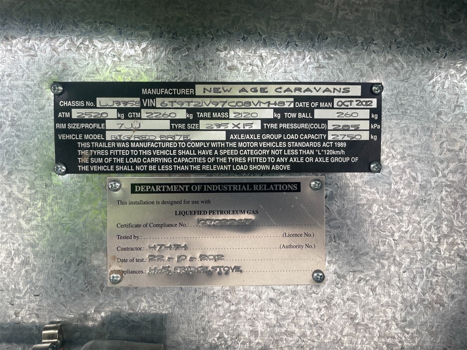Part of Sale 2012 New Age Big Red BRI 7E Caravan
