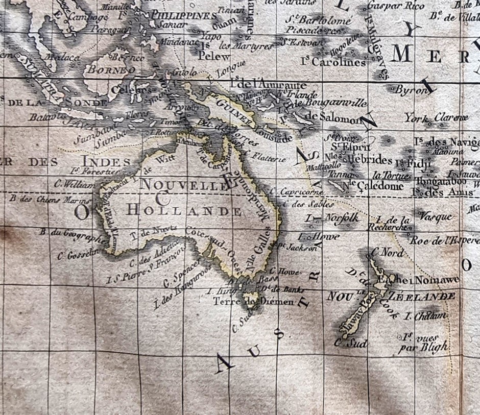 220 YEAR OLD HAND COLOURED MAP OF THE WORLD