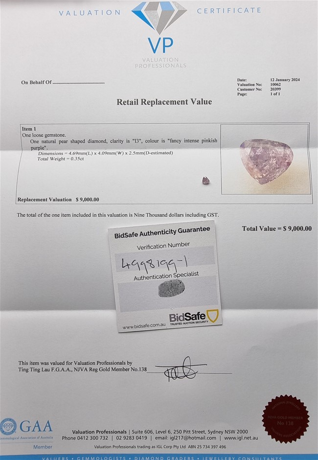 • This Piece Comes with a Formal Insurance Valuation and Gemmologist Report Issued by the Prestigious Valuation Professionals of Sydney