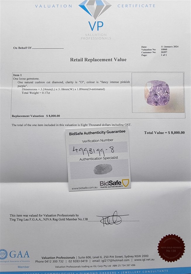 | Part of Sale | No Reserve Natural Fancy Intense Pinkish Purple Diamond | ||||
