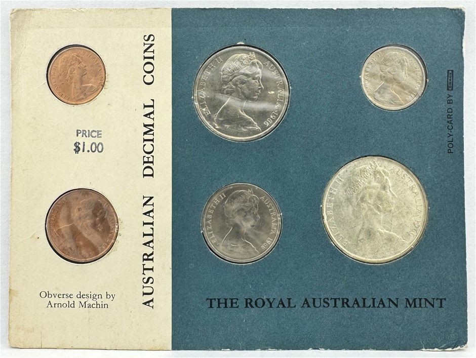 • A Complete 1966 Royal Australian Mint Decimal Coin Set Containing 50c, 20c, 10c, 5c, 2c And 1c Coins.