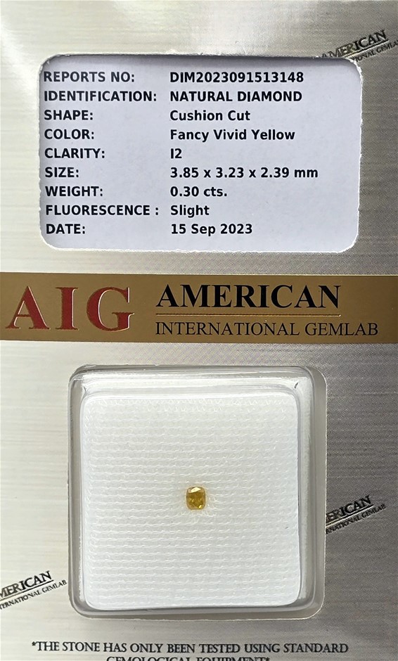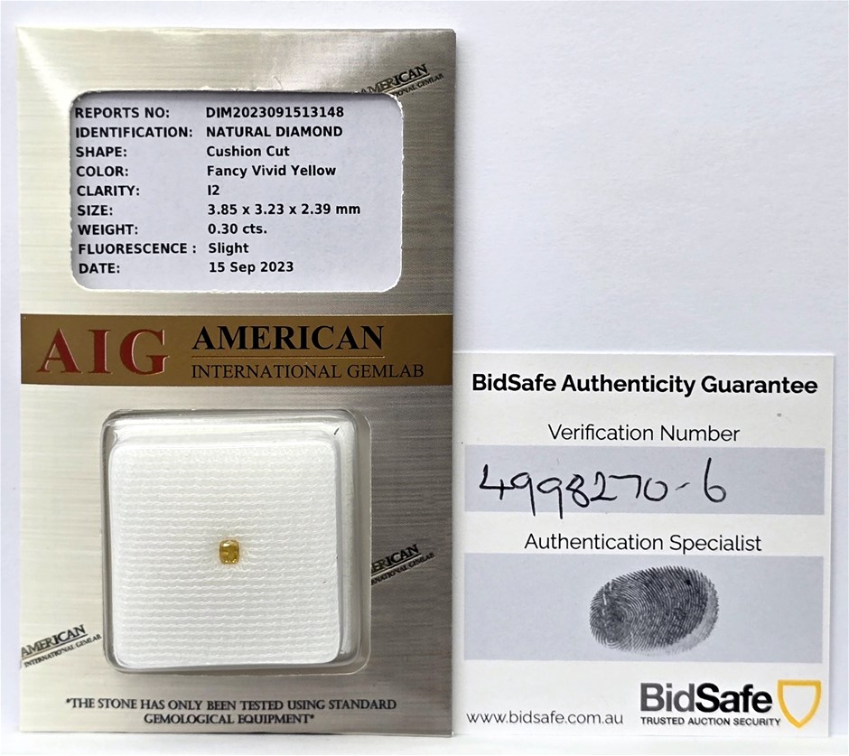 | Part of Sale | Fancy Vivid Yellow Diamond, Cushion Cut, Certified | ||||