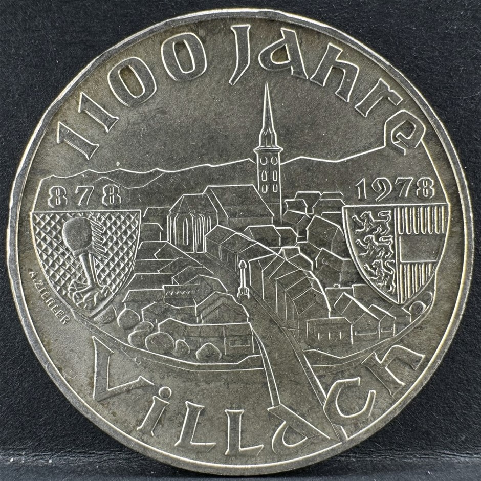 1978 AUSTRIAN 1100TH ANNIVERSARY OF THE FOUNDING OF VILLACH SILVER 100
