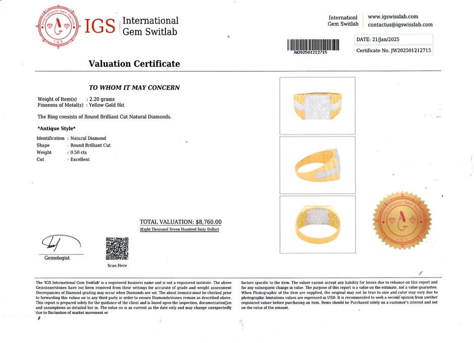 • Valuation Certificate