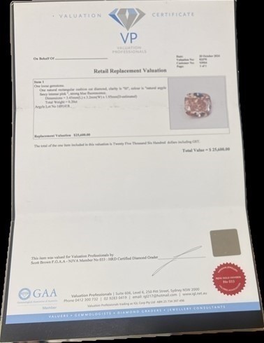 0.20 Carat Argyle Intense Pink Rectangular, Valuation $25,600