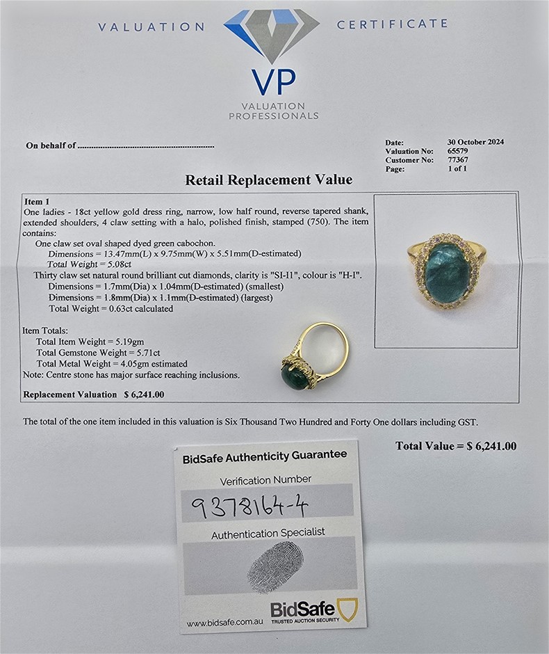 MASSIVE 5.71 CARAT EMERALD AND DIAMOND RING - VALUATION $6,241.00