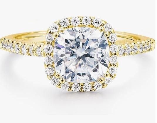 • 2.0CT Moissanite Diamond white Brilliant cut ring with high-quality Solid 925 sterling silver (Stamped ) in 18k Real Yellow gold vermeil, Passed Diamond tester with GRA Certificate .