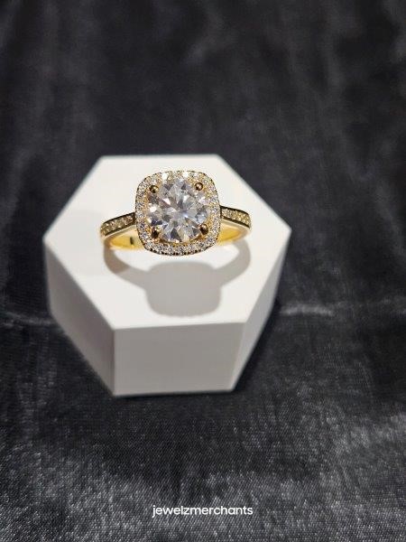 2.0CT GRA Moissanite white Brilliant Cut 18k Real Yellow Gold Vermeil Ring