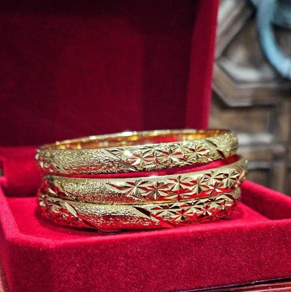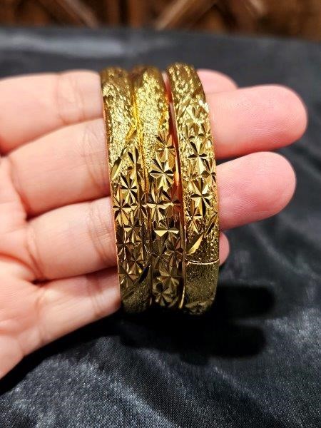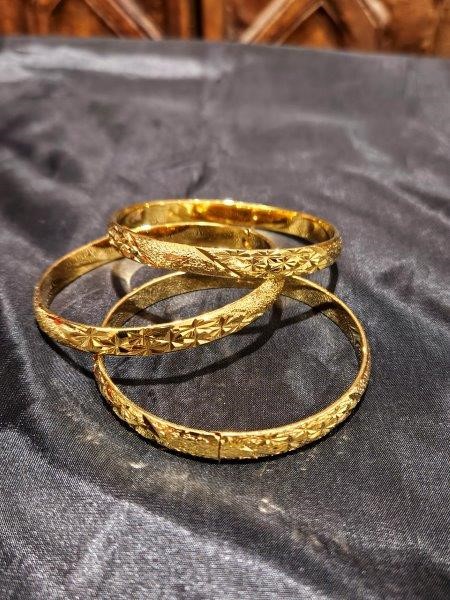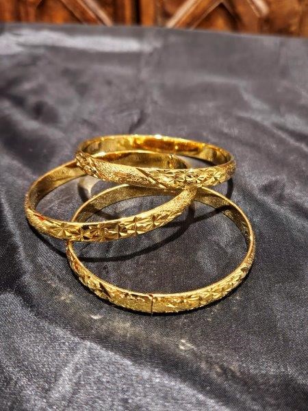 3pcs x 24K Yellow Gold Filled Floral Design Bangles with stamp(24K)
