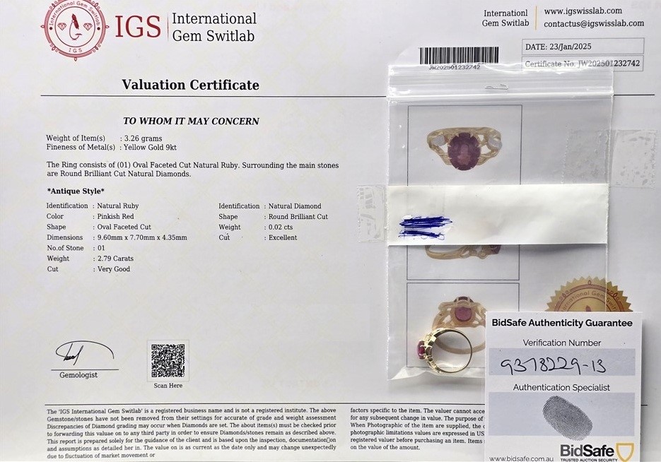 • Internationally recognised BidSafe authentication and verification number: 9378229-13