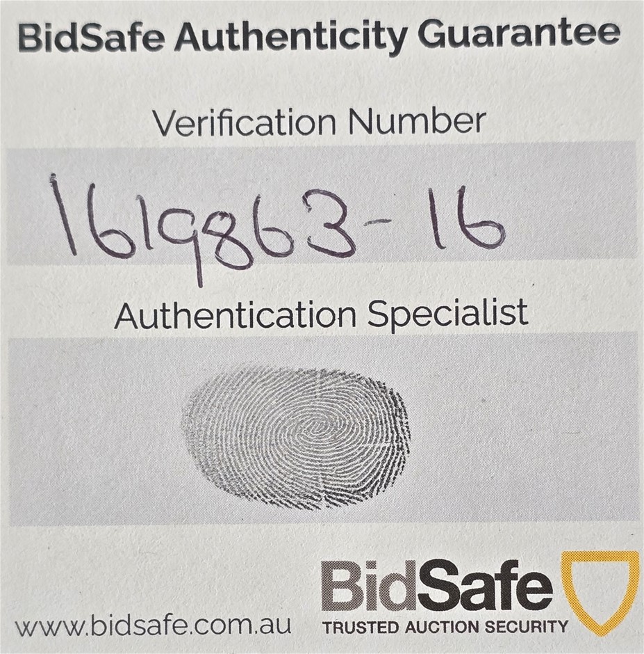 • Accompanied by a BidSafe Certificate of Authenticity, (This Piece Comes with the Internationally Recognised BidSafe Authentication and Verification Number: 1619863-16)