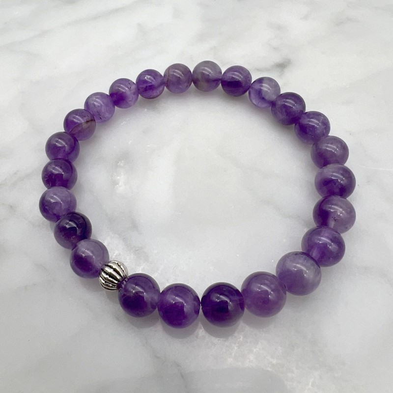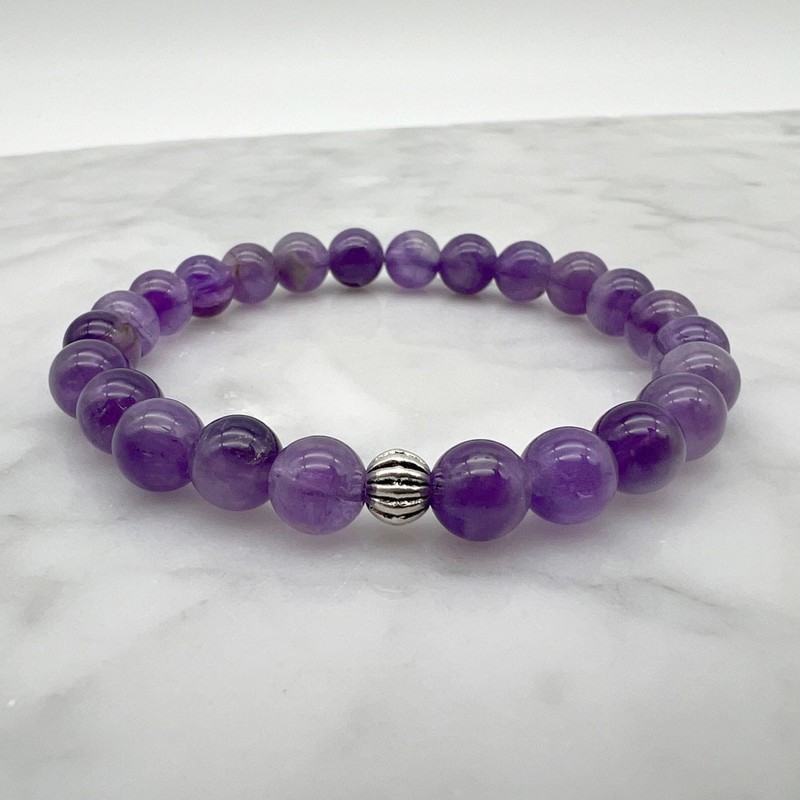 8mm Amethyst & Spacer Stretch Gemstone Beaded Bracelet