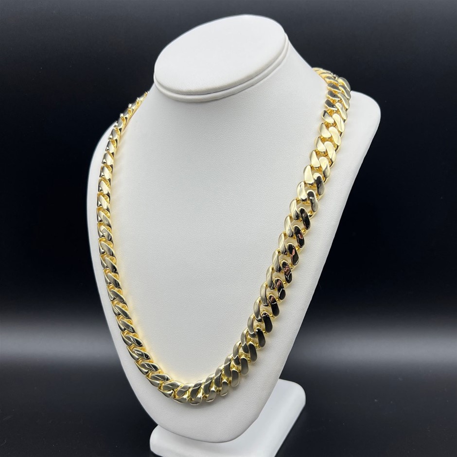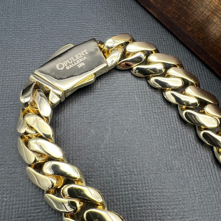 Opulent Galleria - 14K Gold-Filled Solid Cuban Necklace, Simulated Diamonds,15MM Wide - 60.9cm