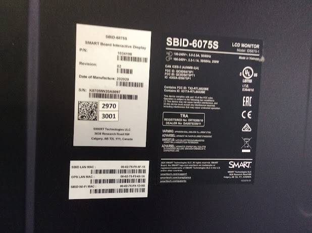 SMART Board 75`` SBID-6075S LCD Monitor